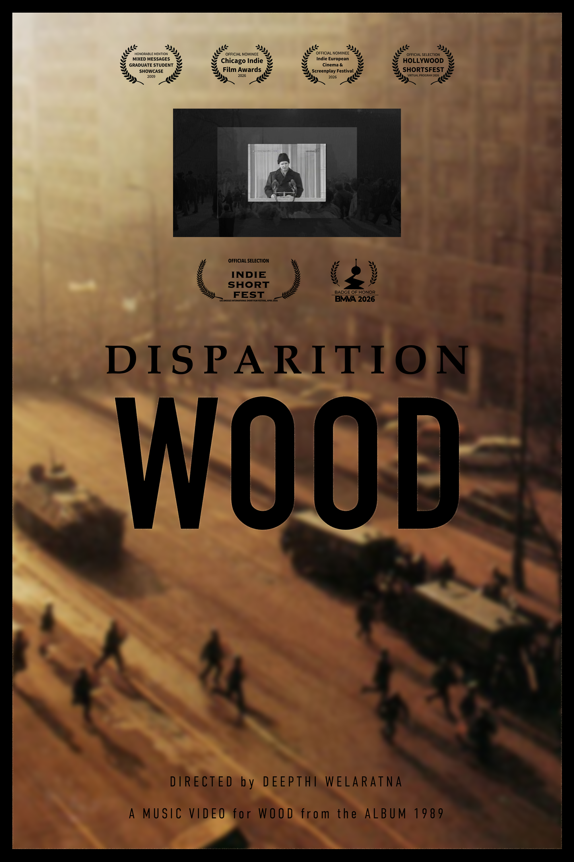 Wood, a music video created in partnership with Disparition, has received an Honorable Mention and is an official selection for Hollywood ShortsFest’svirtual program, taking place from March 26-29, 2026. Contact me for free access to the full on demand lineup. We're so grateful to be included. More information about “Wood” is available on Disparition’s website.